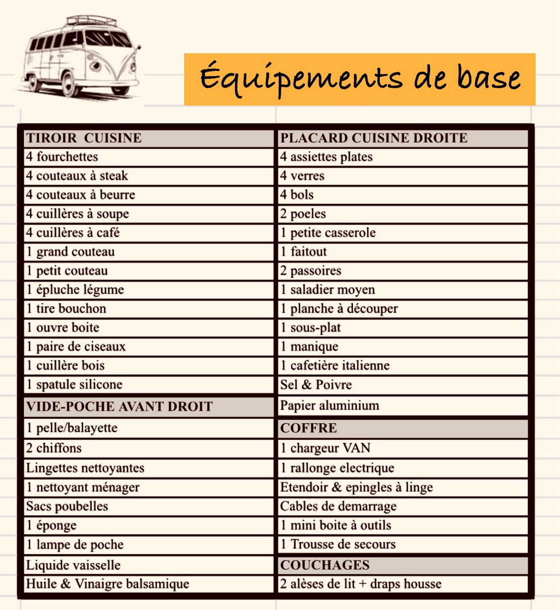 Checklist équipements